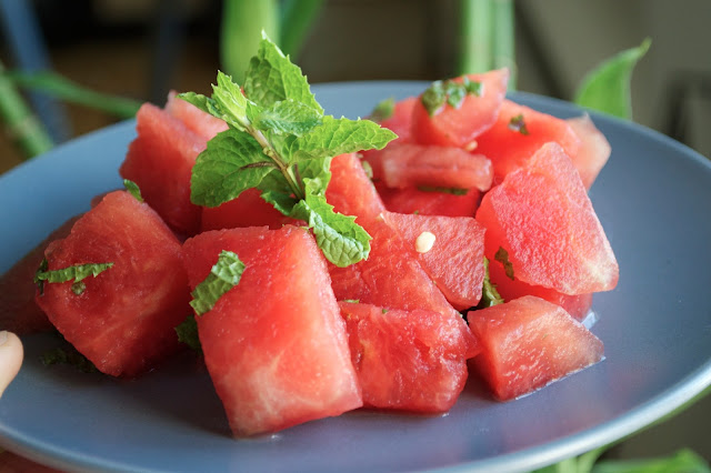 The next time you have fresh watermelon, try adding some finely chopped mint leaves and freshly squeezed lemon juice. I like to leave it in the fridge for at least 30 minutes so the flavour of the mint really skinks in, but in all honesty, this is entirely optional - serving it as soon as you make it is also delicious.